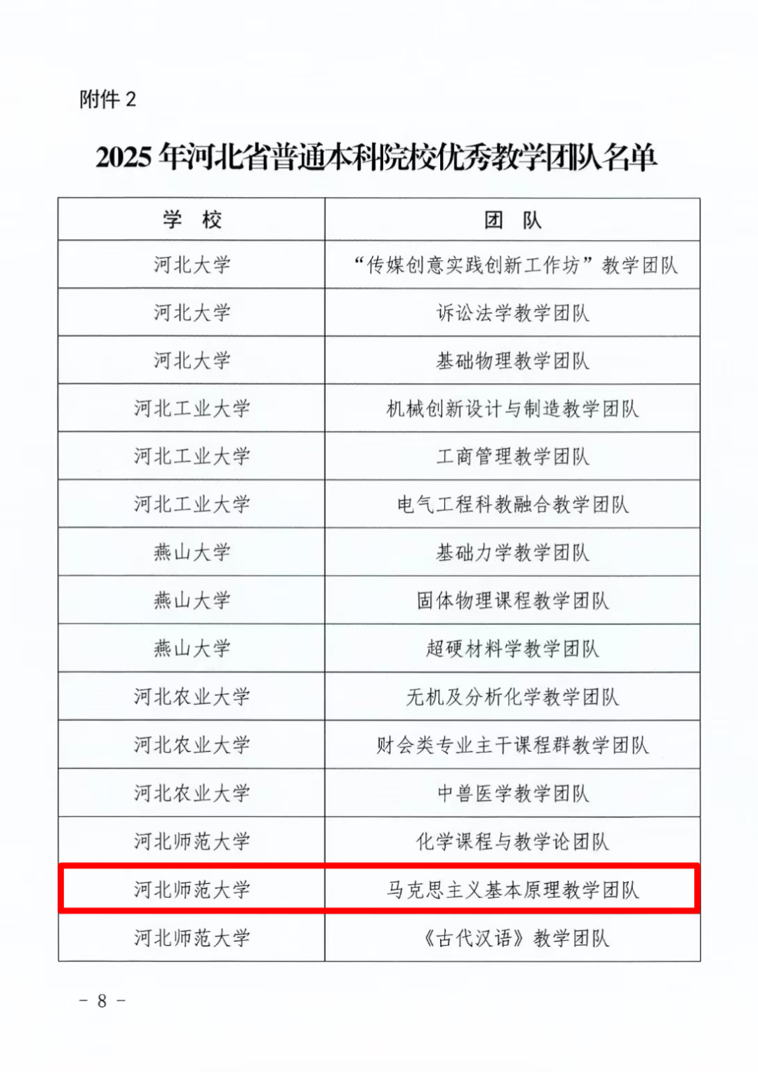 永利网址 马克思主义基本原理团队入选2025年河北省普通本科院校优秀教学团队名单